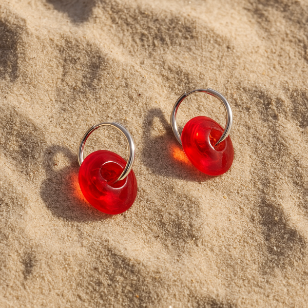 Aros de de acero quirurgico acompañados de donas de vidrio indio, el pop de color que te levanta enseguida.