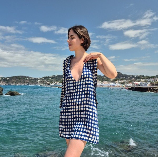 Uno mas que volvio con todo, el vestidito picnic, con sus tiras en hombros, largas, anudadas, en moño, de cualquier forma que quieras. Fresco y encima con escote reversible. que mas?