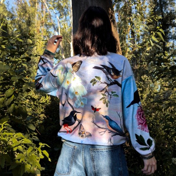 Buzo de plush sublimado. Este item tiene una pequeña falla en la costura del cuello a la altura de la nuca, como se ve en la ultima foto.