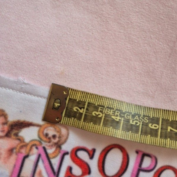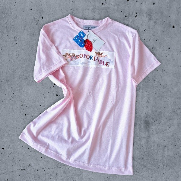 Remera de algodón con parche frontal en gabardina engomada sublimada con bordes deflecados. Este item tiene una pequeña falla, una manchita en el frente, indicada en fotos.