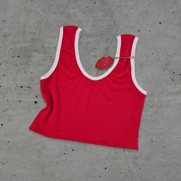 Top de rib con bordes a contratono y dije colgante. Este item es una muestra.